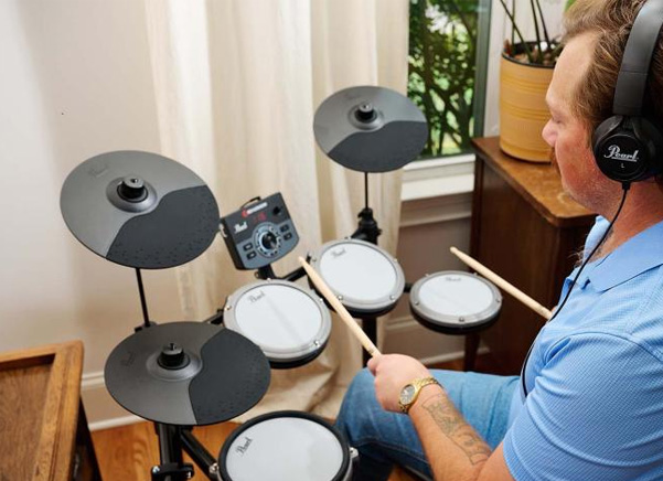 As an all-in-one, box-to-beats kit, Pearl eRoadshow includes the key essentials for getting started straight away. Alongside the drum rack, pads and module, you also get headphones and Pearl drumsticks for quiet practice, plus a height-adjustable drum throne so you can play comfortably with correct posture and setup.